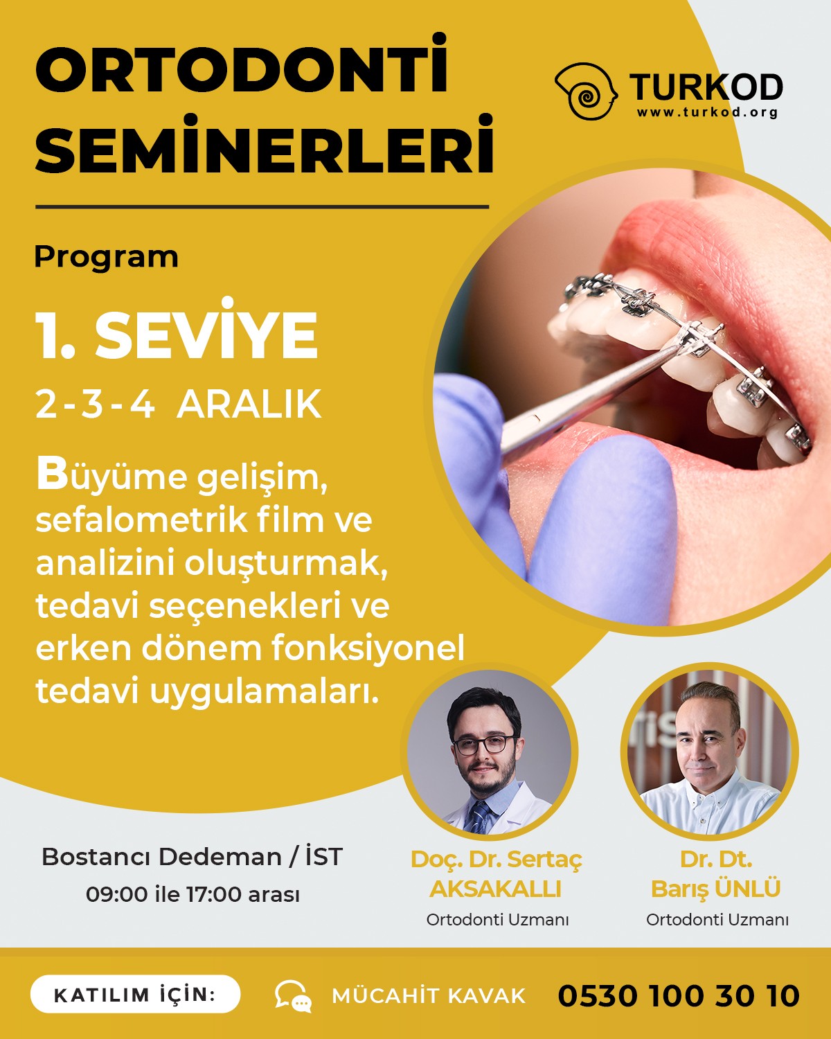 Derneğimizin düzenlemiş olduğu Ortodonti Seminerine katılarak bilgi beceri ve yetkinliğinizi arttırabilirsiniz. Diş hekimlerinin temel bilgilerinin tazelenmesi, ortodonti tedavisinin yaygınlaşmasını sağlamak, klinik vakaların paylaşılması, diş hekimlerinin mesleki, bilimsel ve sosyal yönden bilgilerinin geliştirilmesi ve ortodonti bilimine katkı sağlama ve ortodonti eğitiminin yaygınlaştırılması amacı ile düzenlenen seminerlerimizde siz değerli diş hekimlerini görmekten mutluluk duyarız.